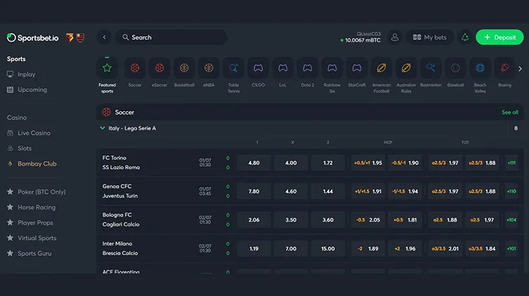 The simple, user-friendly interface allowed us to easily navigate the site, information was easily found, bets were easily made. In comparison to other sports betting websites, you can see that Sportsbet.io has invested time, effort and smarts in creating an interface that just makes sense.